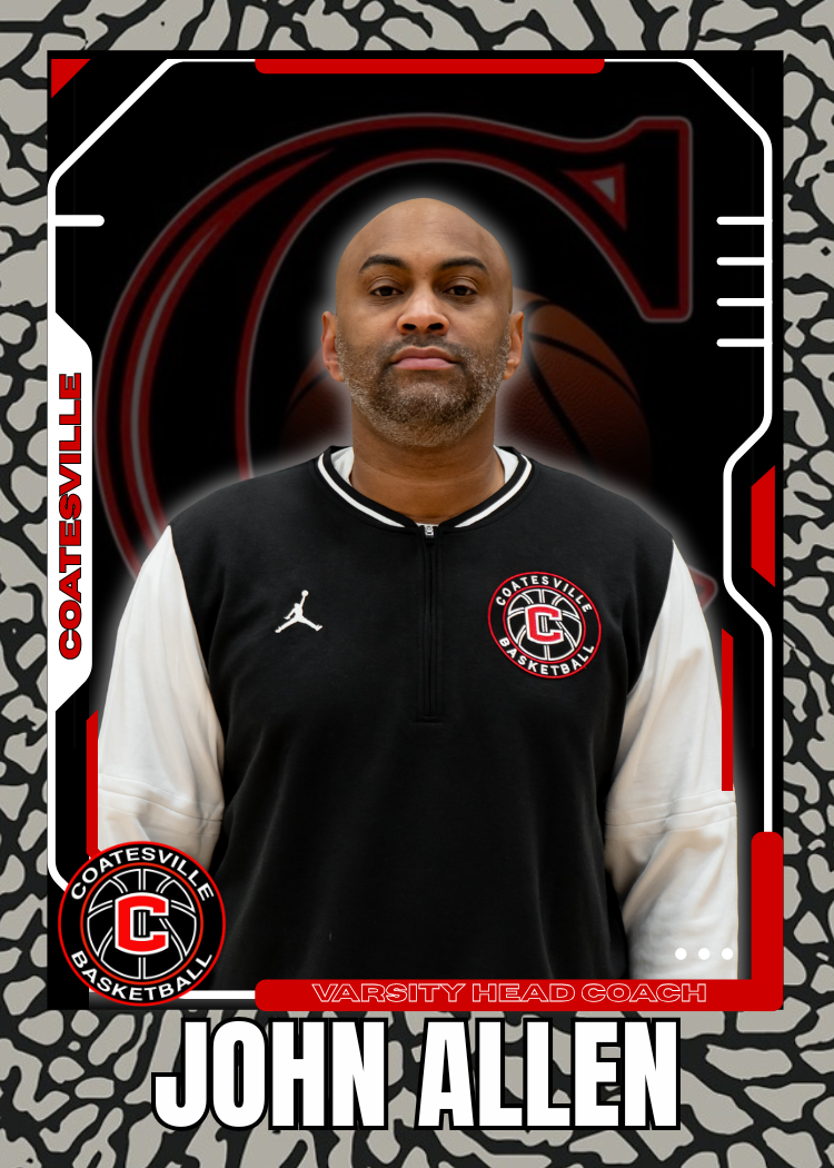 John Allen is the Varsity Head Coach and a former Coatesville Basketball star who led the program to its only PIAA State Championship in 2001. After a standout high school career, Coach Allen played collegiately at Seton Hall and went on to compete professionally overseas. A respected leader on and off the court, Coach Allen is deeply involved in the community and has helped elevate the program to new heights through discipline, accountability, and a winning culture.