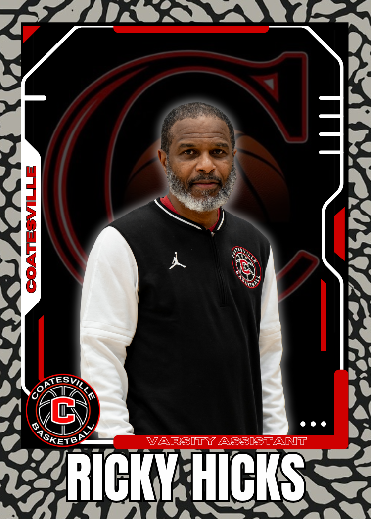 Ricky Hicks is a Coatesville Basketball legend as both a player and a coach. He served as an assistant coach on the 2001 State Championship team and has spent decades training and coaching elite talent, including NBA players and collegiate athletes. Coach Hicks currently coaches on the Nike EYBL circuit, bringing elite-level experience, toughness, and competitive edge to the program.